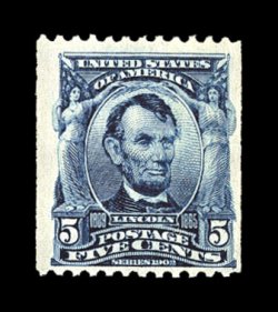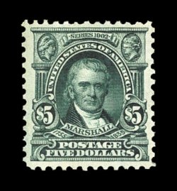 264 og 313 image#313, $5.00 Dark green, uncommonly well centered, deeply rich color and a sharp impression, o.g., lightly hinged, a very fine and handsome example of this scarce high value; 2001 PSE certificate. (Image) $3,000.00