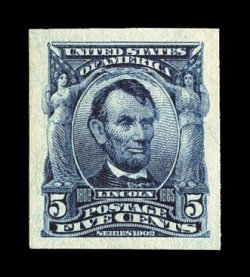 265 nh 315 image#315, 5c Blue imperforate, a striking mint single, featuring huge balanced margins all around, deep prooflike color and impression on fresh paper, unblemished o.g., n.h., an extremely fine gem; 1999 PF certificate. (Image) $425.00