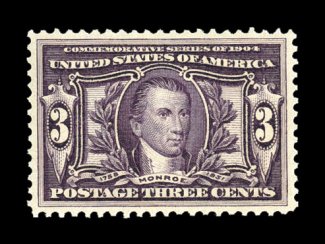 272 nh 325 image#325, 3c Louisiana Purchase, wonderfully well balanced margins all around, rich luxuriant color, pristine o.g., n.h., extremely fine and choice; 2002 PF certificate. (Image) $200.00