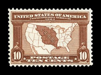 274 nh 327 image#327, 10c Louisiana Purchase, exceptionally well centered, beautiful rich color and a crisp impression on bright paper, immaculate o.g., n.h., extremely fine; a most attractive example; 1994 PF certificate. (Image) $400.00