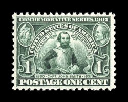 275 nh 328 image#328, 1c Jamestown, uncharacteristically well centered and margined, strong rich color, o.g., n.h., extremely fine; 2004 PSE certificate for the block of six from which this came. (Image) $65.00