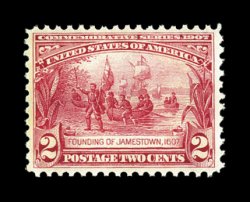 276 nh 329 image#329, 2c Jamestown, excellent centering and margins for this difficult series, bright color, unblemished o.g., n.h., extremely fine and quite choice; 2004 PSE certificate (XF 90; SMQ $265.00). (Image) $75.00