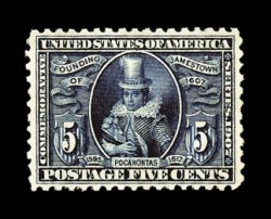 277 nh 330 image#330, 5c Jamestown, uncommonly well centered, deep rich color on fresh paper, o.g., n.h., extremely fine; 1996 PF certificate. (Image) $325.00