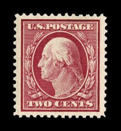 278 nh 332 image#332, 2c Carmine, gem mint single of this relatively common stamp in anything but common quality, precisely centered within extraordinarily wide margins, brilliantly fresh color, pristine o.g., n.h., extremely fine; 2005 PSE certificate (XF-Superb 95; SMQ $170.00). (Image) $14.00