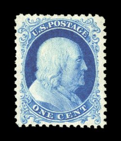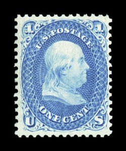 38 nh 63 image#63, 1c Blue, pristine mint single, lovely fresh color and a well defined impression on crisp paper, nicely centered and margined, unblemished o.g., never hinged, very fine; 1994 PF certificate. (Image) for hinged $375.00