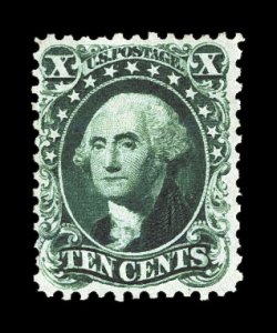24 og 35 image#35, 10c Green, Ty. V, well centered within exceptionally wide margins, deep intense color and impression, o.g., lightly hinged, extremely fine; 1983 PF certificate. (Image) $275.00