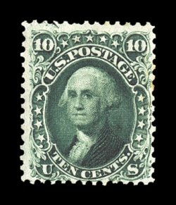 37 og 62B image#62B, 10c Dark green "August", lovely rich color in the characteristic deep shade, strong impression, full o.g., lightly hinged, some very minor creasing which is often the case on this stamp, a few faintly toned perf. tips at right, fine appearance; a rare mint stamp; 1997 PF certificate. (Image) $7,500.00