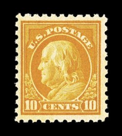 424 nh 472 image#472, 10c Orange yellow, well centered within very large margins, gorgeous bright color, o.g., n.h., extremely fine; 2002 PSE certificate. (Image) $240.00