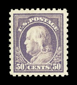 430 nh 477 image#477, 50c Light violet, an exceptional quality mint single of this high value, being extraordinarily well centered within extra-large margins which are most uncharacteristic, lovely fresh color, o.g., never hinged, extremely fine overall; never hinged examples of this stamp are very scarce, especially this well centered and margined; 1989 PF certificate for a block of four, this being the bottom right stamp, and a 2001 PF certificate for the single. (Image) $2,400.00