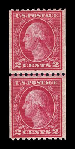 434 nh 487 image#487, 2c Carmine coil, Ty. II, perf. 10 horiz., joint line pair, deep vibrant color, nicely centered, o.g., n.h., very fine; 1992 PF certificate; ex-"Vineyard". (Image) $210.00