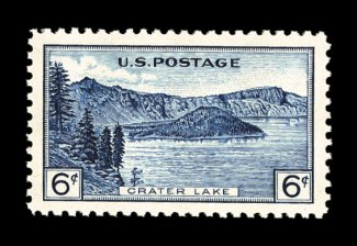 482 nh 745 image#745, 6c Crater Lake, huge margins all around and perfectly centered within these impressive borders, incredibly bright and fresh, o.g., n.h., extremely fine; a striking jumbo. (Image) $1.50