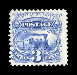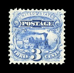 96 og 125 image#125, 3c Blue re-issue, beautiful fresh color and a clean impression on pristine white paper, nicely centered within large margins, full o.g., a very fine example of the rarest value of the 1869 Pictorial re-issues, with only 1,406 having been sold; 2002 PSE certificate. (Image) $5,500.00
