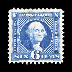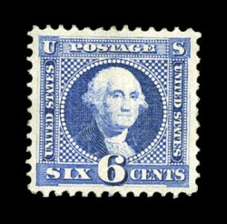 97 og 126 image#126, 6c Blue re-issue, an extraordinary quality mint single that is not only wonderfully well centered within large margins, but it also remarkably fresh, with gorgeous color that is uncharacteristically bright and rich, razor-sharp impression on crisp white paper, full o.g., relatively lightly hinged, extremely fine; few of the 2,226 sold possess the impressive physical characteristics of this stamp; 2001 PF certificate. (Image) $2,250.00