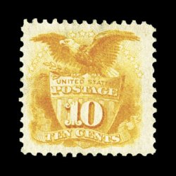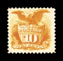 87 og 116 image#116, 10c Yellow, gorgeous color that is both deep and rich, strong impression, well centered within large margins, o.g., lightly hinged, very fine; a premium quality original gum Ten Cent 1869 Pictorial; 1988 PF certificate. (Image) $2,500.00