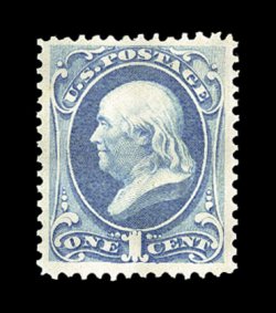 122 nh 156 image#156, 1c Ultramarine, highly select "post office" fresh mint single, with bright color and impression on pristine paper, marvelously well centered within large margins, unblemished o.g., never hinged, extremely fine; actually quite scarce never hinged (and specifically certified as such); 1998 PF certificate; ex-McKinney, Lewis. (Image) for hinged $300.00