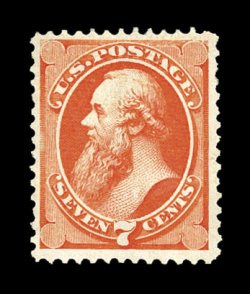 126 og 160 image#160, 7c Vermilion, an attractive mint example this scarce and difficult Bank Note, with gorgeous color that is both deep and intense, vivid impression, well centered within large margins, full o.g., lightly hinged, choice very fine; 2003 PF certificate. (Image) $1,500.00