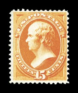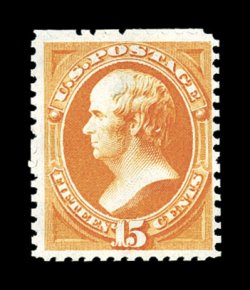 139 og 174 image#174, 15c Bright orange special printing, without gum as issued, an exceedingly choice example of one of the most difficult of all the Hard Paper Special Printings to find in premium condition, being one of the very few in existence whose perforations, while scissor separated as almost always, are completely intact, in fact, we estimate that well over two thirds of the existing population have their perforations trimmed off on one or more sides, brilliantly fresh, with radiant color and impression on immaculate paper, well centered, very fine; fewer than 40 examples of this value are thought to still exist; 1998 PF certificate. (Image) $17,000.00