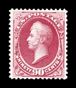 131 og 166 image#166, 90c Rose carmine, a particularly fresh and desirable mint example of this very scarce high value, possessing radiant rich color and a crisp detailed impression on clean white paper, uncommonly well centered and margined, o.g., lightly hinged, very fine; 1975 PF and 2002 PSE certificates. (Image) $2,750.00