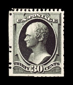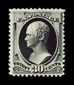 160 og 201 image#201, 30c Greenish black special printing, without gum as issued, a seldom seen sound example of this very rare special printing, rich unmistakable greenish black color and a strong impression on bright paper, rather well centered, completely free of any flaws which plague so many existing examples, very fine for this; approximately 40 examples are thought to exist of the Thirty Cent Soft Paper Special Printing; signed W.H.C. (Warren H. Colson) and accompanied by 1943 APS and 1973 PF certificates; ex-Sheriff. (Image) $22,500.00