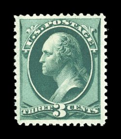 147 nh 184 image#184, 3c Green, pristine mint single, deep luxuriant color and an intense impression on fresh paper, uncommonly well centered within lavishly large margins, o.g., never hinged, extremely fine; 2003 PF certificate. (Image) for hinged $120.00
