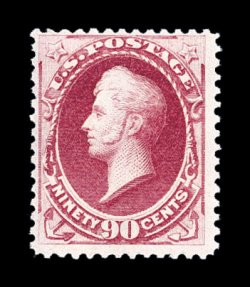 154 og 191 image#191, 90c Carmine, strong rich color and impression, o.g., never hinged, fine; certified never hinged examples of this high value are almost never encountered; 1994 PF certificate. (Image) for hinged $2,500.00