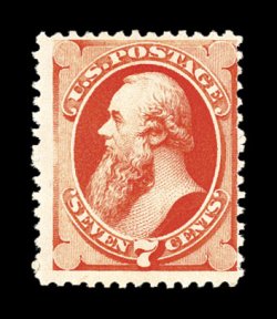 156 og 196 image#196, 7c Scarlet vermilion special printing, without gum as issued, deep luxuriant color, centered to right as most are found, faintest suggestion of a couple pinpoint thin specks, still quite fine for this rare special printing; less than 100 copies are thought to exist; clear 1954 PF certificate. (Image) $6,500.00