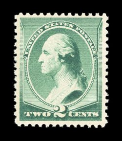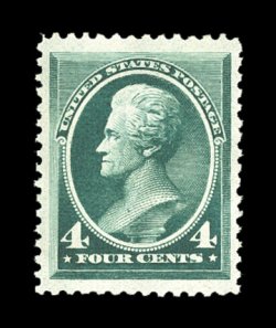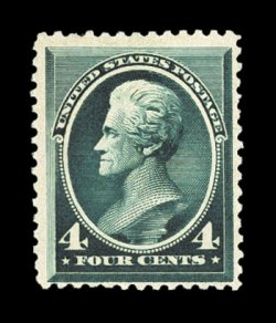 163 og 211D image#211D, 4c Deep blue green special printing, without gum as issued, especially intense color and a deeply etched impression, well centered, very fine. There are only 26 recorded examples of this immensely rare stamp, 25 of which have been certified by the Philatelic Foundation. The number known exactly coincides with Post Office records which indicate 26 copies of the Four Cent Special Printing were sold. Therefore, it is highly unlikely any further copies will ever be found that will be certified by the Philatelic Foundation.A handsome example of one of the rarest of all the Special Printings. Lightly signed by both E. Stern and Ward, as well as being accompanied by 1946, 1987, 1989 and 2002 PF certificates; ex-Ballman, Lewis. (Image) $45,000.00
