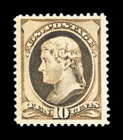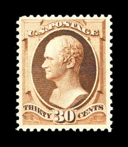 174 nh 217 image#217, 30c Orange brown, an extraordinarily choice mint single in a condition that is seldom encountered, wonderfully well centered within extra-large margins, gorgeous rich color and a highly detailed impression, unblemished o.g., n.h., extremely fine; an especially handsome stamp; 1987 PF certificate; ex-"Silver Lake". (Image) $1,500.00