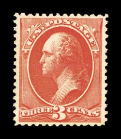 171 nh 214 image#214, 3c Vermilion, intense vibrant color and impression, especially well centered within wide margins, unblemished o.g., n.h., extremely fine; a stamp with great eye appeal; 1992 and 2003 PF certificates. (Image) $240.00