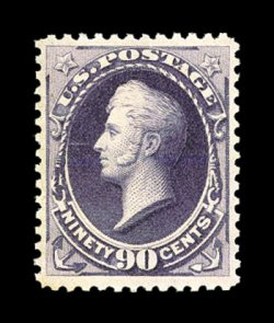 175 nh 218 image#218, 90c Purple, a superlative mint single in the most pristine state imaginable, possessing gorgeous rich color and a razor-sharp impression on immaculate paper, incredibly well centered within large margins, even its perforations are unusually full and intact, unblemished o.g. without a single gum bend or skip, never hinged, extremely fine; a "post office" fresh gem for the perfectionist; 2005 PF certificate. (Image) $4,000.00