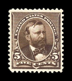 180 nh 223 image#223, 5c Chocolate, premium quality mint single that is extraordinarily well centered and margined, plus its color is especially deep and intense, razor-sharp impression on fresh paper, o.g., n.h., an extremely fine gem; 1995 PF certificate; ex-"Vineyard". (Image) $300.00