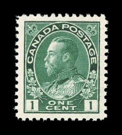 832 nh 104 image#104, 1c Green, extraordinarily high quality mint example, "post office" fresh with luxuriously rich color and a crisp impression, perfectly centered within extraordinarily wide margins, pristine o.g., n.h., an extremely fine gem (Unitrade C$60.00). (Image) $32.50