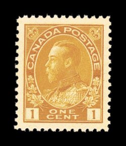833 nh 105 image#105, 1c Orange yellow, wet printing, Die I, marvelously well centered mint single possessing wide even margins, vibrant deep color on fresh white paper exhibiting full even perforations, immaculate o.g., n.h., extremely fine; not at all common in this gem condition (Unitrade C$60.00). (Image) $32.50