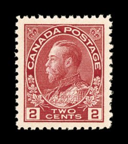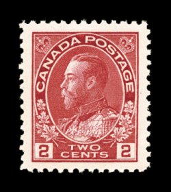 835 nh 106ii imageUnitrade #106ii, 2c Deep rose red, gem mint single being perfectly centered amid extraordinarily wide margins, wonderfully fresh with lovely color of this deep rose red color, fresh white paper and crisp even perforations, pristine o.g., n.h., extremely fine (Scott for normal carmine shade $30.00). (Image) Unitrade C$60.00