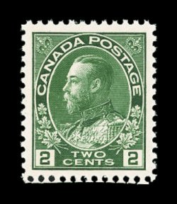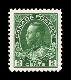 839 nh 107e image#107e, 2c Green, dry printing, exceedingly well centered within large margins, sumptuously bright color and a clean impression on fresh paper, o.g., n.h., extremely fine; (Unitrade C$45.00). (Image) $15.00