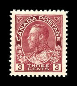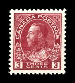 848 nh 109c image#109c, 3c Carmine, Die II, extraordinarily well centered mint single, possessing exceptionally large perfectly balanced margins, rich color, o.g., n.h., extremely fine; a select mint example of this much scarcer die (Unitrade C$150.00). (Image) $90.00