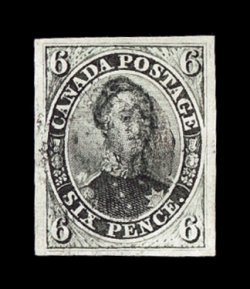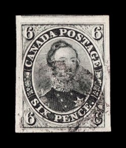 655 O 5a image#5a, 6p Brownish gray on medium wove paper, a magnificent used single of this scarce shade, surrounded by extraordinarily wide margins that are beautifully balanced, color is deep with a razor-sharp impression, plus the cancel is incredibly light, unlike so many where the cancel obliterates the face, extremely fine gem; a superb example of this very scarce stamp, worthy of the finest used collection of Canada; 1956 RPS and 2002 BPA certificates; ex-Geldert (Unitrade C$3,000.00). (Image) $2,250.00