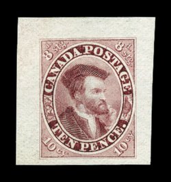660 TC 7TC var. image#7TC var., 10p Claret trial color die proof on thin wove paper, measuring 26x28mm, taken from a trade sample sheet of the American Bank Note Co., not listed in Unitrade, extremely fine and attractive. (Image) Est. 300-400