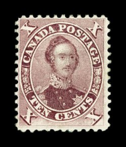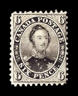 685 og 13 image#13, 6p Brown violet perforated 12, an amazingly fresh mint example of this rare and challenging stamp, possessing incredibly deep fresh color in a rich brown violet shade, crisp detailed impression, full even perforations which are frequently lacking on most copies and actually quite well centered for this value despite the perforations being slightly in at right, full original gum that is seldom found as fresh as this, h.r., very fine; not only are the first perforated stamps of Canada rare but invariably the perforations encroach on at least one side of the design, which is the way they are valued in the catalogs; the example offered here is far above the norm in its freshness and attractiveness; signed Holcombe and accompanied by 1987 Greene Foundation certificate; ex-Harrison (Unitrade C$12,000.00). (Image) $8,250.00