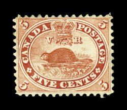 691 og 15 image#15, 5c Vermilion, remarkably fresh mint single with vivid vermilion color on bright paper, extraordinarily well centered for this difficult perforated issue, large part disturbed o.g., extremely fine and handsome; 1999 Greene Foundation certificate (Unitrade C$900.00). (Image) $350.00