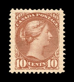 753 og 45a image#45a, 10c Dull rose, a precision centered mint single amid extraordinarily large margins, gorgeous color and quite bright for this shade, plus a crisp impression and nice perforations all around, full o.g., extraordinarily lightly hinged, extremely fine gem and quite rare in this select condition; (Unitrade C$750.00). (Image) $475.00