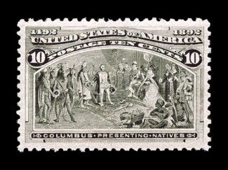 183 nh 237 image#237, 10c Columbian, especially well centered within large margins, fresh color and paper, o.g., n.h., extremely fine; 2002 PF certificate. (Image) $350.00