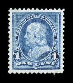 191 nh 247 image#247, 1c Blue, wonderfully well centered within lavishly large margins, sumptuously rich color and a well defined impression on brilliantly fresh paper, o.g., n.h., extremely fine; a large-margined gem; 1997 PF certificate. (Image) $225.00