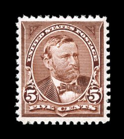 197 nh 255 image#255, 5c Chocolate, exceptionally well centered, brilliantly rich color and a crisp impression, o.g., n.h., extremely fine; 2003 PF certificate for a block of four, this being the bottom right stamp. (Image) $375.00