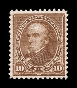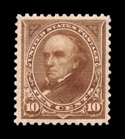 223 nh 282C image#282C, 10c Brown, Ty. I, unusually well centered for this always difficult stamp, rich luxuriant color and a crisp detailed impression, immaculate o.g., n.h., extremely fine; 1996 PF certificate for a pair, this being the left stamp (bottom selvage subsequently removed). (Image) $600.00