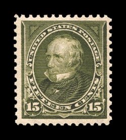 225 nh 284 image#284, 15c Olive green, uncommonly well centered and margined, bright fresh color and a clean impression, o.g., n.h., very fine; 2005 PF certificate. (Image) $475.00