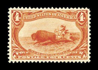 228 nh 287 image#287, 4c Trans-Mississippi, exceptionally well centered within wide margins, gorgeous vivid color and impression, o.g., n.h., extremely fine; 2003 PF certificate. (Image) $350.00