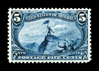 229 nh 288 image#288, 5c Trans-Mississippi, deep luxuriant color and a particularly intense impression on bright white paper, well centered within uncharacteristically large margins, o.g., n.h., extremely fine; 2004 PF certificate. (Image) $350.00