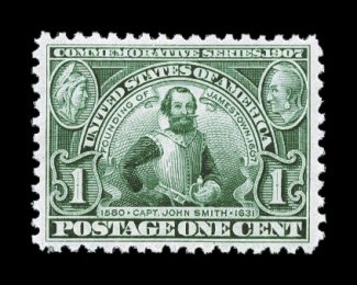 261 nh 328 image#328, 1c Jamestown, unusually well centered and margined, strong rich color, o.g., n.h., extremely fine; 2000 PF certificate. (Image) $65.00