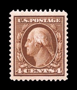 266 nh 334 image#334, 4c Orange brown, especially well centered within extravagantly large margins, sumptuously rich color and a well defined impression, pristine o.g., n.h., an extremely fine jumbo; 2003 PF certificate. (Image) $90.00